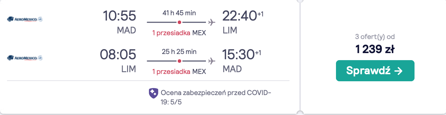 Mega przygoda! Lot do Peru z przesiadką w Meksyku, gdzie spędzasz sobie cały dzień! Lot jest z Madrytu, ale do tego miasta możemy dotrzeć za grosze z Polski (lot Polska-Madryt polecam kupić w grudniu, a nie teraz) 🙂 Kupuj lot i spełniaj marzenia, bo takie ceny nie będą długo!