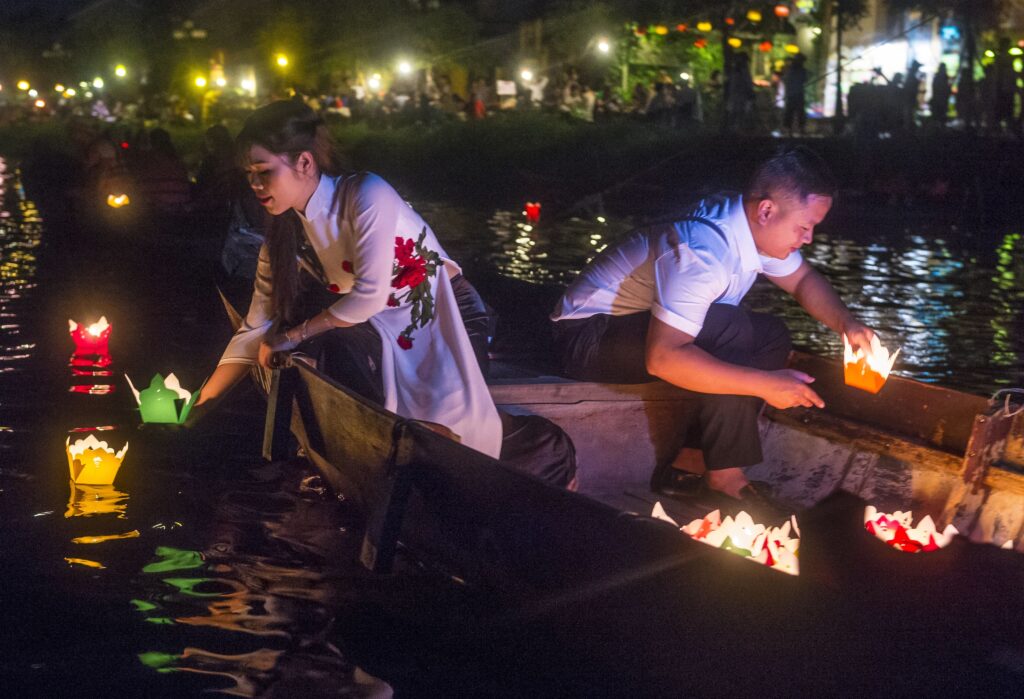 - Hoi An — miasto lampionów. W ciągu dnia zwiedzasz świątynie, muzea, warsztaty rękodzieła; wieczorem — mrok, lampki, woda w kanałach.